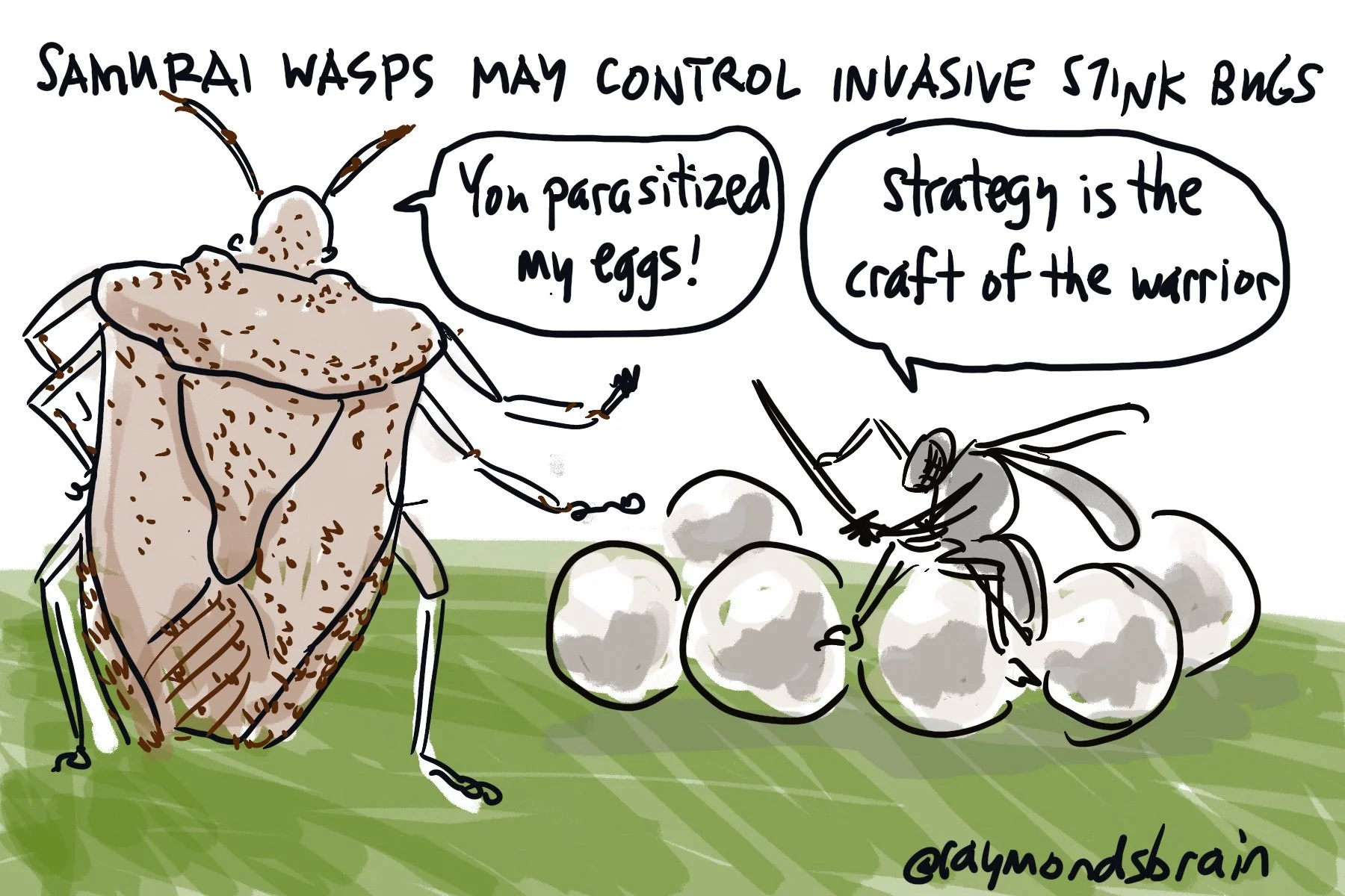 Brown Marmorated stink Bugs are invading. Samurai wasps are coming after them. Apologies to Miyamoto Musashi for the quote