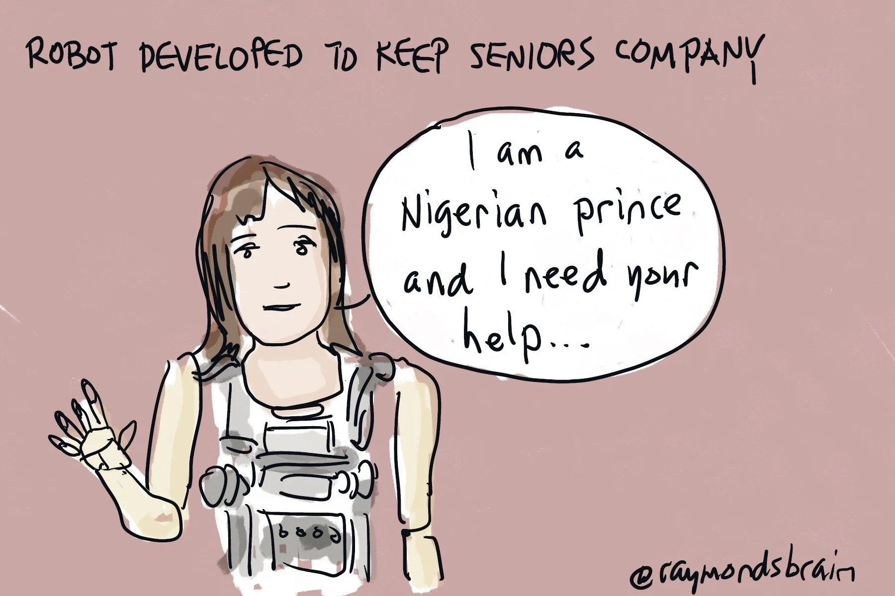 A robot has been developed to converse with seniors. I find this fascinating and sad that this is seen as useful. People need company. I wondered about the technology getting into the wrong hands.