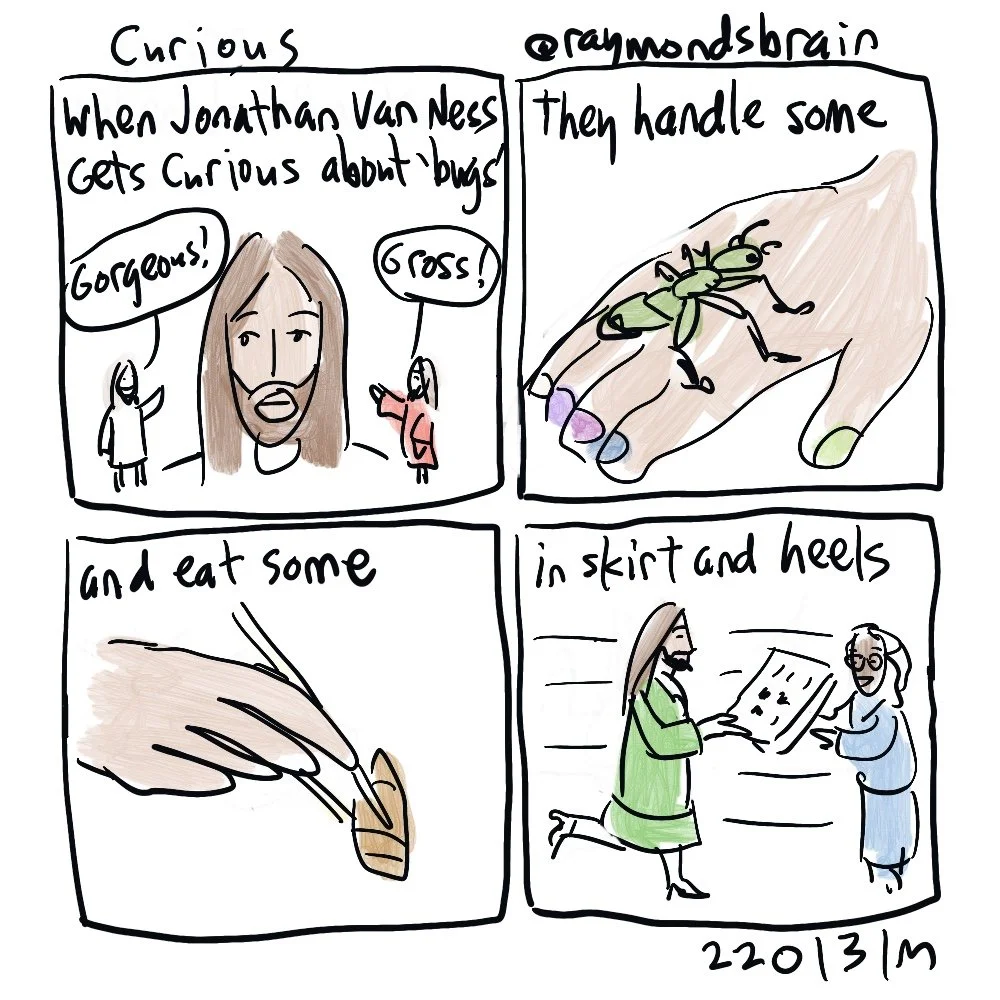 I have not watched Queer Eye, so was only vaguely aware of them. I enjoyed the fun of this episode of Getting Curious on Netflix. He also learned about insects and spiders from women scientists of colour at the American museum of Natural History.