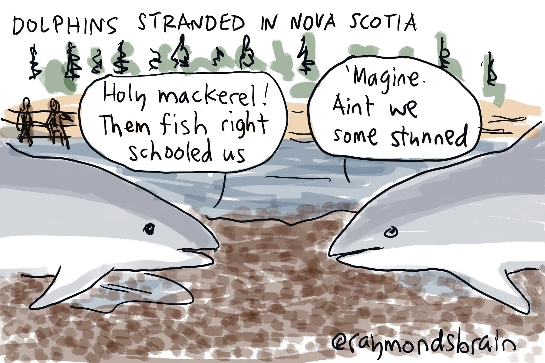 Dolphin strandings Some dolphins got stranded in Nova Scotia. Fortunately, some locals helped them out. ComicsRaymond Nakamura, Ph.D.August 20, 2022Comment 0 Likes