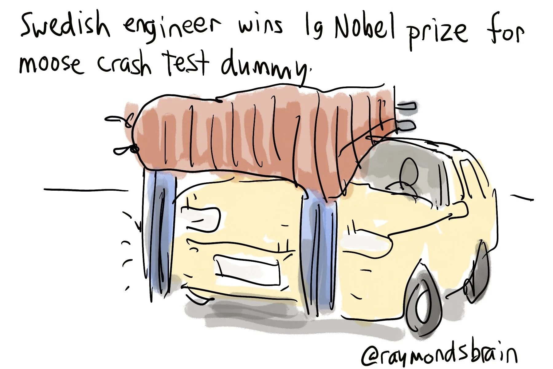 Farce = Moose x Acceleration Maybe they should sell the moose crash test dummy at IKEA. ComicsRaymond Nakamura, Ph.D.September 17, 2022scienceComment 0 Likes